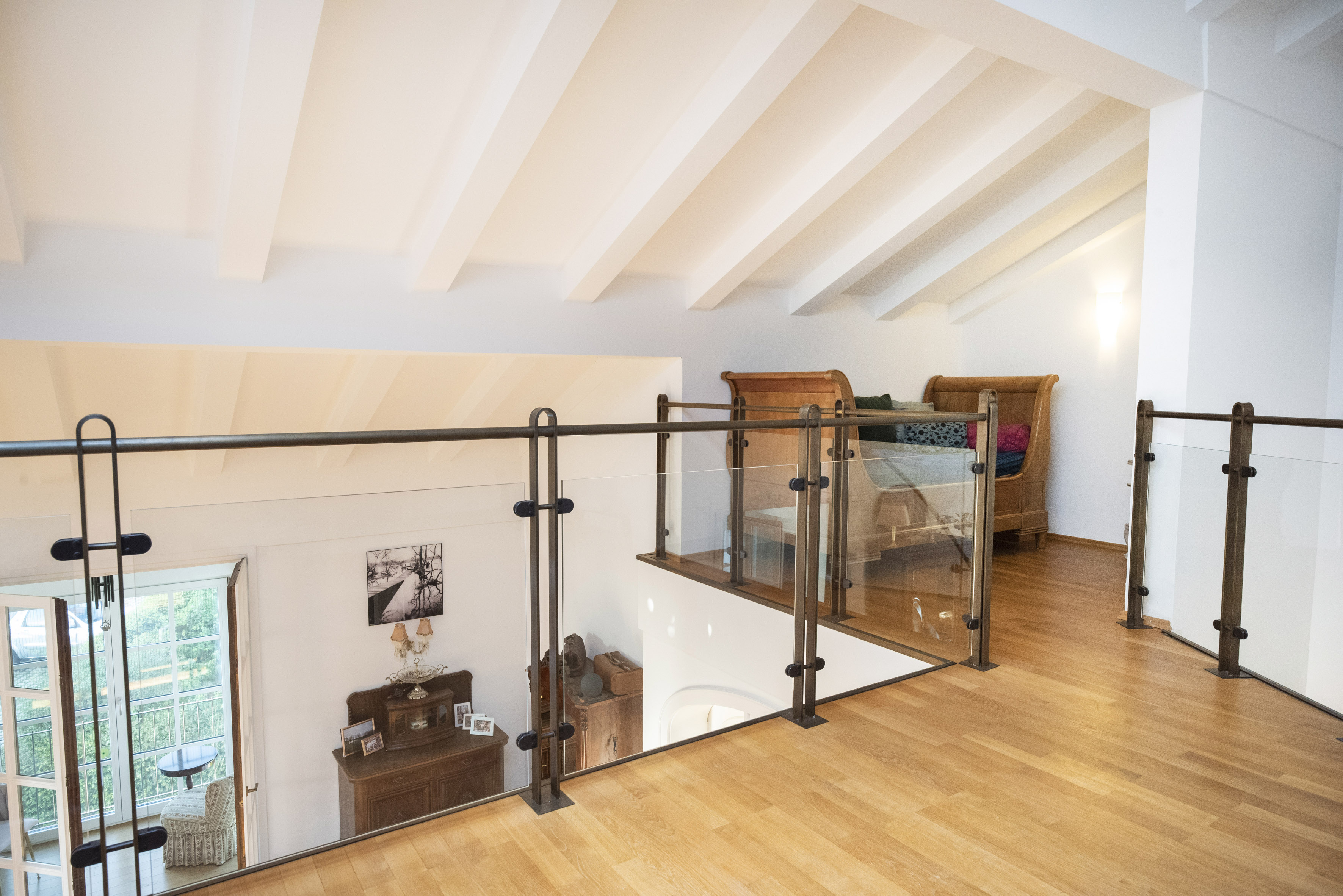 • Glasbrüstung der Galerie bietet Licht und Raum und öffnet Blick bis hin zum OG